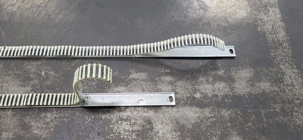 The New CNC Auto Trak eliminates this issue by making it a single piece system per door. It is machined out of 6061 alum. and anodized red to match the machine and it installs in about 5 minutes. It uses the existing screws to attach it to your machine with no machine modifications needed. Best of all they are Half the Price of Factory OEM.